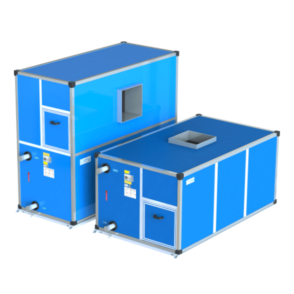 Air Handling Unit berpanel yang menghasilkan udara bersih, terfilter, dan terkontrol untuk aplikasi komersial & industri—mis. rumah sakit, mall, gedung perkantoran, pabrik, dan fasilitas makanan.